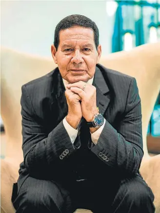 PAPEL DO VICE. “Sou um assessor privilegiado, porque sou um assessor eleito. É diferente dos ministros, que podem ser escalados e ‘desescalados’ a qualquer momento. Eu não posso ser ‘desescalado’. Nós somos irmãos siameses, eu e ele (Bolsonaro). Estamos juntos mesmo. E ele já tinha sinalizado que me colocaria em outras tarefas. O que vejo mais é auxiliá-lo na tomada de decisões, cooperando em trabalhos interministeriais. Não precisa ser função oficial, mas de pequenos conselhos.”