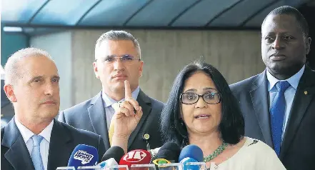 Governo. Ao lado de Onyx Lorenzoni, Damares Alves fala depois de ser confirmada para administrar o novo ministério Críticas •A pessoas próximas, Jair Bolsonaro evita criticar o senador Magno Malta, antigo aliado. Diz que ele poderá ter espaço no governo, desde que não seja para um cargo de influência.
