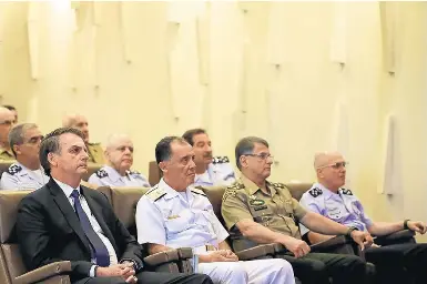 Militares. Bolsonaro em reunião, a partir da esq., com Ilques (Marinha),Pujol (Exército) e Bermudez (FAB)