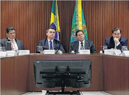 Agenda. Com Davi Alcolumbre (esq.), Hamilton Mourão e Rodrigo Maia, Bolsonaro participa de reunião com parlamentares