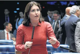 Sessão. Simone Tebet (MDB-MS) no plenário do Senado; parlamentar vai comandar a CCJ