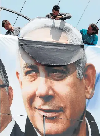Em Israel. Cartaz de Netanyahu em Jerusalém: visita ocorre às vésperas da eleição
