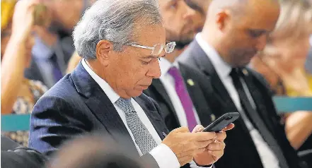 WhatsApp. O ministro Paulo Guedes troca mensagens durante a ‘Cantata de Páscoa’ realizada no Palácio do Planalto