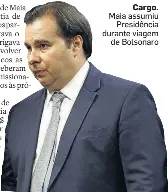 Cargo. Maia assumiu Presidência durante viagem de Bolsonaro