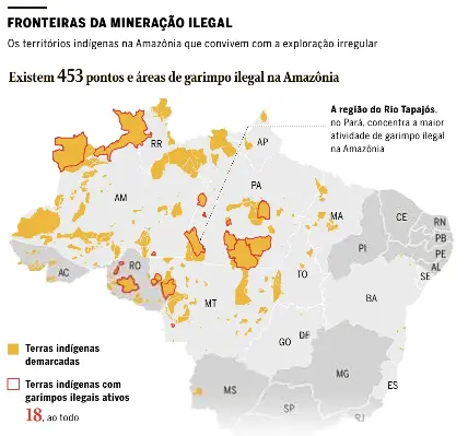 > Em nota enviada ao GLOBO, o Instituto Brasileiro de Mineração (Ibram) diz considerar positivo inibir qualquer atividade ilegal relacionada à mineração. “Há espaço no território nacional para atividades legalizadas, que gerem desenvolvimento, e pagamento de impostos”. (Guilherme Caetano )