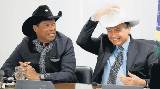De chapéu. Ao lado de Valdemiro Santiago, da Igreja Mundial do Poder de Deus, o presidente Jair Bolsonaro participa de transmissão em rede social