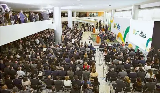 Anúncio. Solenidade que marcou os 200 dias do governo Bolsonaro no Planalto: foram anunciadas nove medidas para “simplificar” a vida dos brasileiros