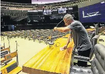 Em ordem. Funcionário prepara plenário para votação