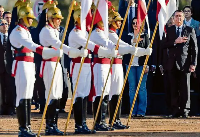 Decisão tomada. O presidente Bolsonaro participa do hasteamento da Bandeira Nacional, no Palácio da Alvorada, Brasília: segundo porta-voz, nome de Eduardo é o único cogitado para embaixada