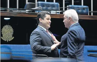 Pelo pacto. Senadores Davi Alcolumbre e Otto Alencar, ontem, no plenário do Senado