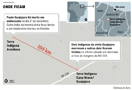 O atentado a tiros ocorreu no último sábado na BR-226, entre as aldeias Boa Vista e El Betel, em Jenipapo dos Vieiras, cidade a 506 quilômetros de São Luís. Os mortos foram identificadas como caciques Firmino Silvino Guajajara e Raimundo Bernice Guajajara.