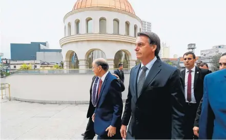 São Paulo. Jair Bolsonaro durante visita ao Templo de Salomão, na região central da cidade; presidente participou de culto