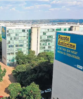 Publicidade. Propaganda do pacote anticrime nos prédios na Esplanada dos Ministérios