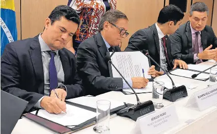 Protocolo. Ministro Sérgio Moro e Ricardo Vélez, ex-titular do MEC, assinam acordo para investigar contratos na Educação