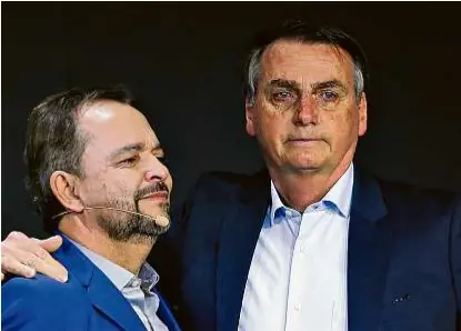 Culto. Bolsonaro abraça o pastor César Augusto, da Igreja Fonte da Vida, aonde o presidente foi na manhã de ontem