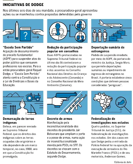 Dodge tentou a recondução, fora da lista tríplice, mas acabou preterida pelo presidente. Ainda com a caneta na mão, a procuradorageral assinou quatro arguições de descumprimento de preceito fundamental (ADPF) contra iniciativas e ideias do governo.