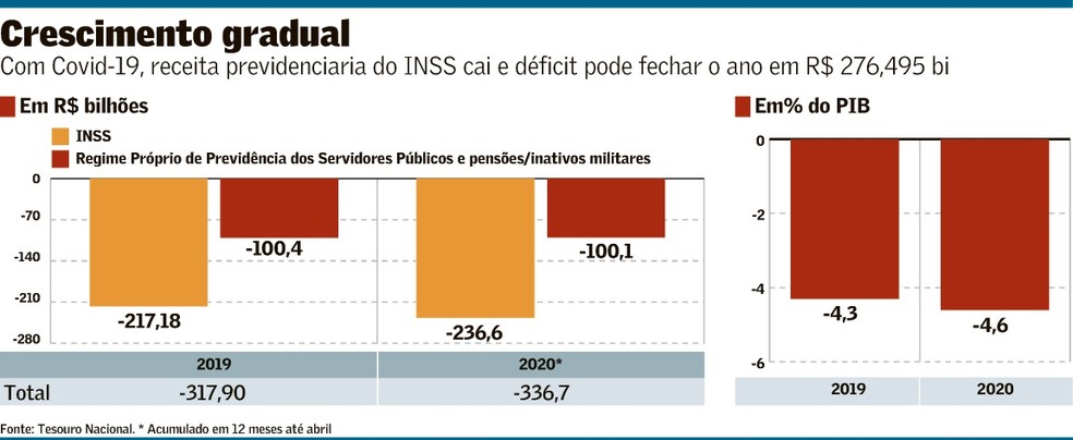 Com a pandemia de covid-19, a equipe econômica elevou recentemente em R$ 35,182 bilhões, para R$ 276,495 bilhões, a projeção do déficit da Previdência Social dos trabalhadores da iniciativa privada para este ano. Mesmo com o ajuste, segundo economistas ouvidos pelo Valor, o rombo poderá ser ainda maior do que o esperado pelo governo devido à incerteza quanto a retração da economia, o aumento do desemprego e a queda da renda da população e seu impacto na despesa e receita.