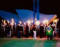 REPRODUÇÃO Na madrugada. Vestido de preto, grupo levou máscaras e tochas em ato e foi comparado a supremacistas americanos
