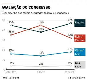No Legislativo, avaliação como ruim ou péssima caiu de 45% para 32%