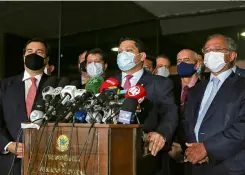 Debate. Maia, Alcolumbre e Guedes após a entrega do texto: proposta do governo será discutida em comissão junto com textos que tramitam no Congresso