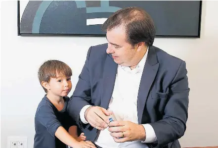 Eleição. O presidente da Câmara, Rodrigo Maia, com seu filho Felipe na residência oficial; mandato termina em fevereiro